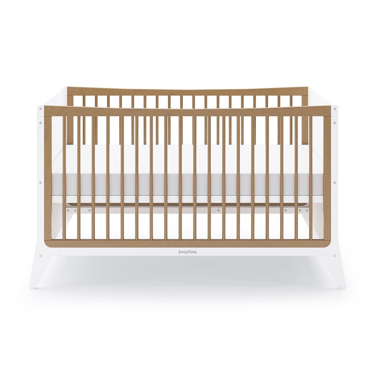 Discover true contemporary style with the SnuzFino 2-piece Nursery Furniture Set. Designed to last, the SnuzFino 2pc Cot Bed and Changing Unit Set has all your nursery essentials covered. Growing with your child up to 4 years of age*, the SnuzFino Cot Bed easily converts into a toddler bed, with a unique arched canopy and toddler rails for extra security as they sleep (*toddler kit sold separately).